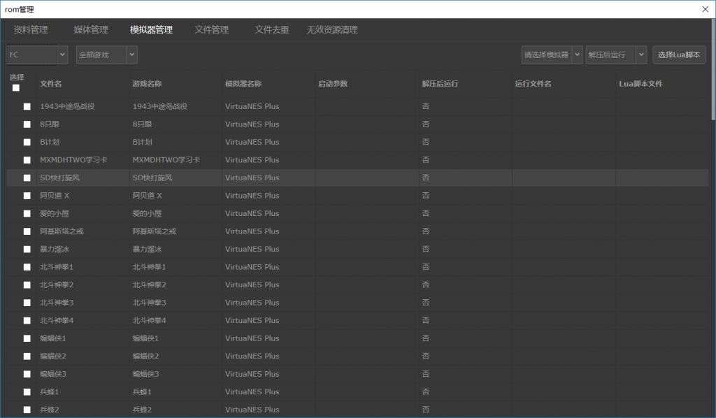 模拟器管理可针对rom批量修改模拟器,以及启动参数等。