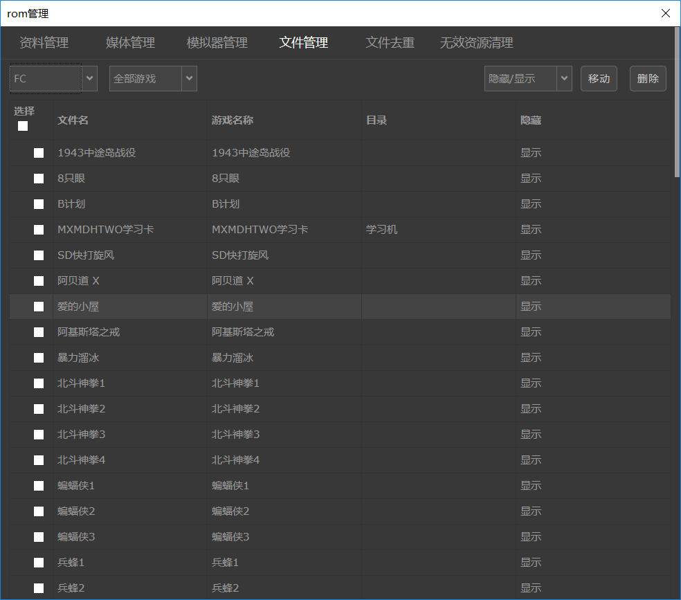 文件管理主要方便用户对rom进行批量移动、隐藏、删除等操作