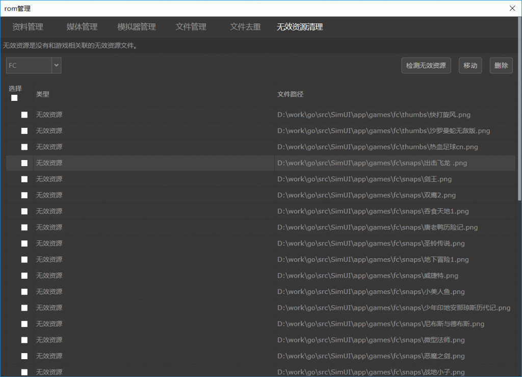 注意:rom清理功能是将文件大小一样的文件全部列出,清理前请仔细观察,以免删除正常rom。